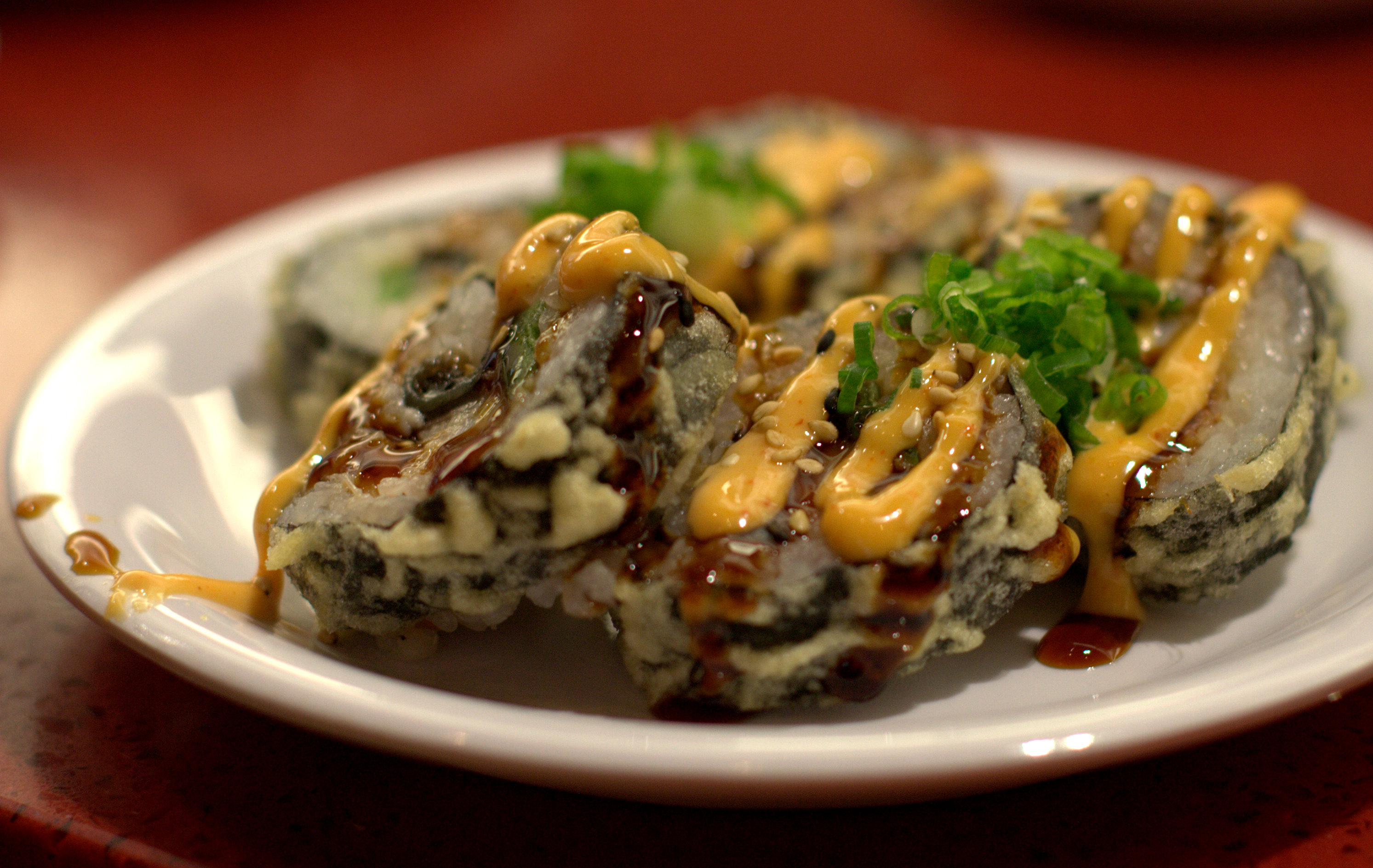 Next up were the sweet potato fries. These aren’t considered an appetizer, they’re listed as a snack, and therefore are not part of the happy hour special. But hey-they’re also only 5 bucks and gosh-darnit, we felt like fries! They were thick, fluffy and very seasoned, a little spicy and a little sweet. Yum.